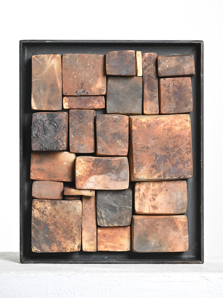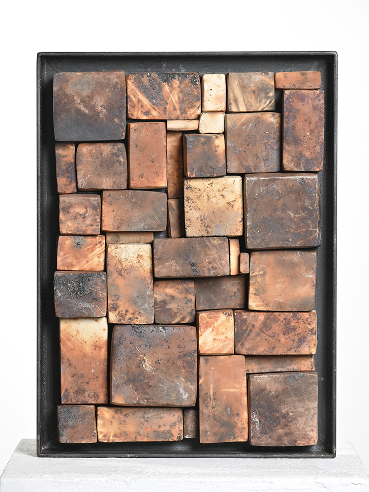 Wandobjekt II I Kapselbrand-Keramik mit Stahlrahmen I H B 26 x H 31,5 x T 7 cm I 2026 I Unikat I € 450,-