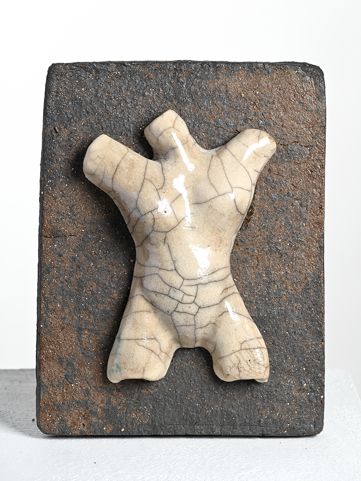 Wandobjekt Raku auf Steinzeug-Platte I B 20 x H 25 cm x T 3 cm I 2026 I Unikat I € 250,-